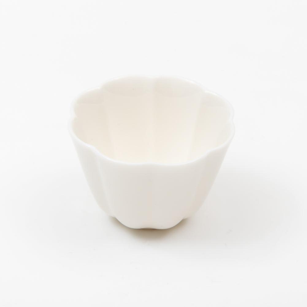 白磁でできた、梅の花の型の洗練されたデザインの茶杯です。なめらかな肌触りと口当たりの良い形状、そして白い磁器のためどんな茶器とも組み合わせができる当店の人気商品です。