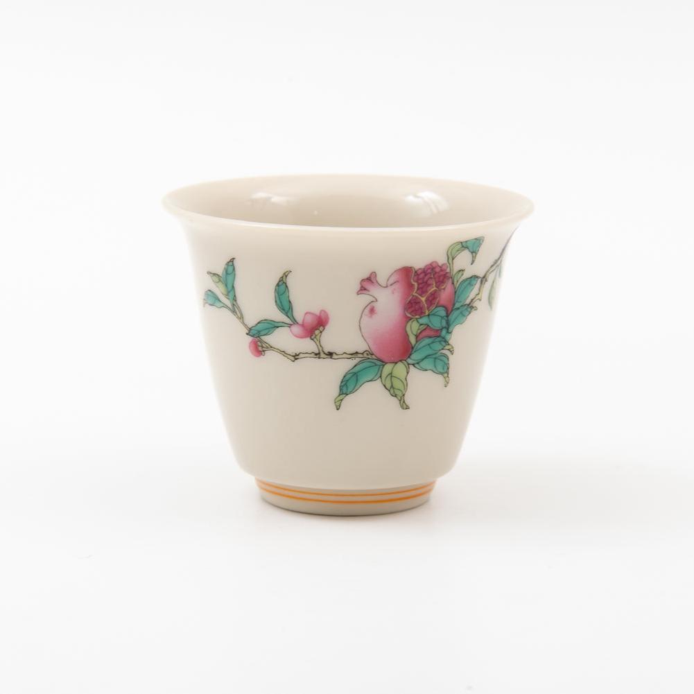 草木灰 手書き風ザクロ茶杯 | Wood ash glazed Pomegranate teacup