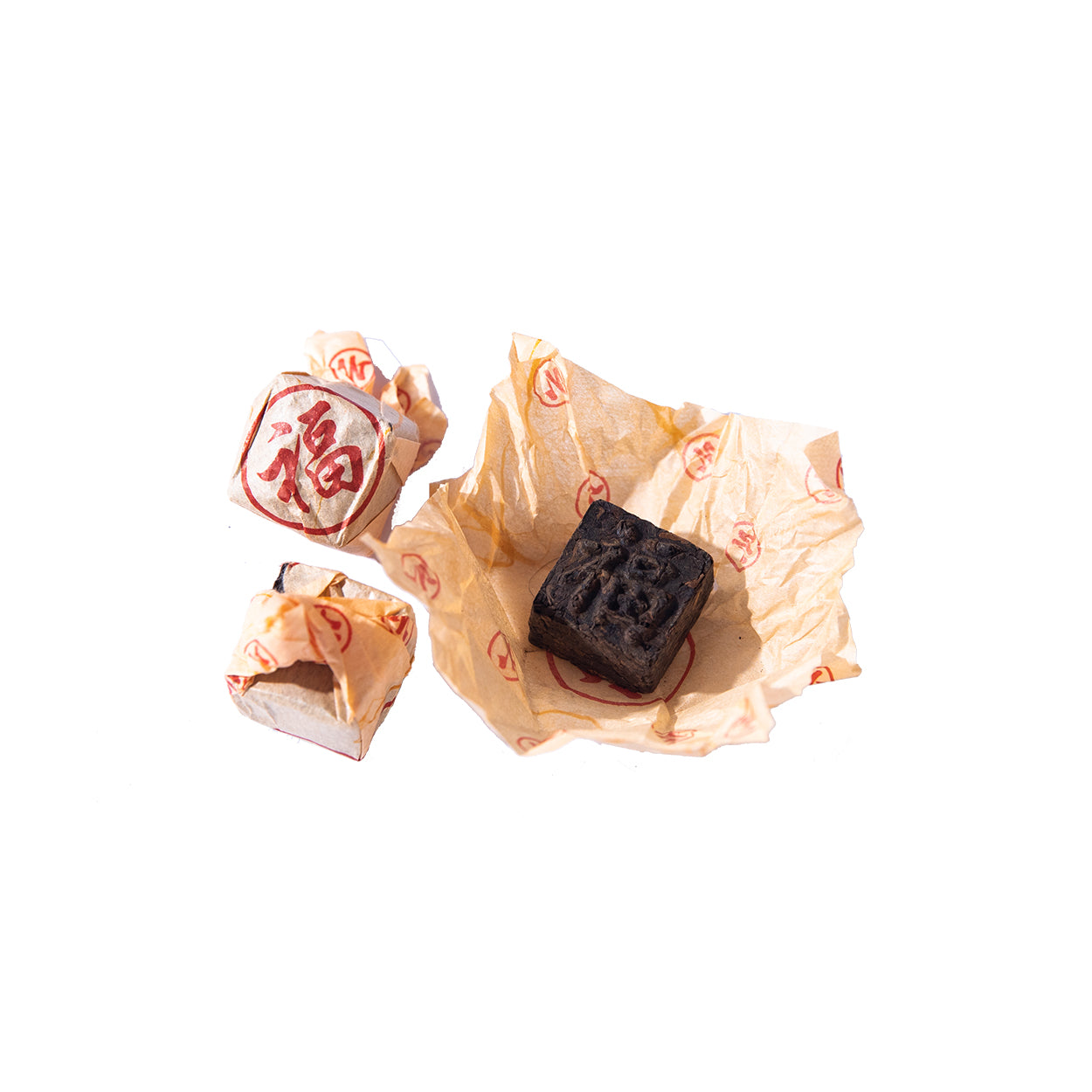 沖泡非常方便的普洱茶小茶磚。茶磚上刻有「福」字象徵吉祥,特別退薦送禮的茶品。茶湯呈現出濃厚的褐色。像紅酒一般,散發出深沉的大地氣息,口感沉穩濃郁。普洱茶有助於健胃整腸、抑制血糖上升、促進食慾、特別推薦用餐時或飯後飲用。